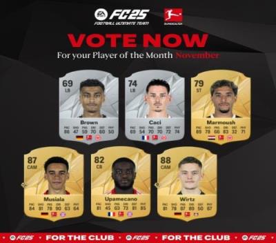 体育资讯12月11日报道宣称 德甲官方11月最佳球员的候选名单出炉,穆西亚拉、维尔茨、于帕梅卡诺在列。