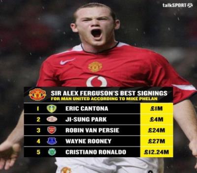 体育资讯1月21日报道宣称 前曼联助教迈克-费兰日前作客talkSPORT电台节目,并选出自己心目中的弗格森曼联生涯五佳签约。
