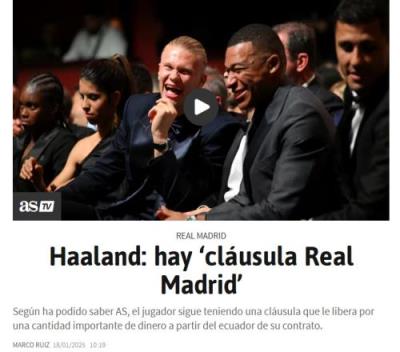 阿斯:哈兰德一直对加盟皇马敞开大门,他新合同中有高额违约条款