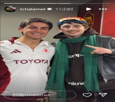 体育资讯1月18日报道宣称 在个人社媒,演员提莫西-查拉梅分享与迪巴拉的合照。