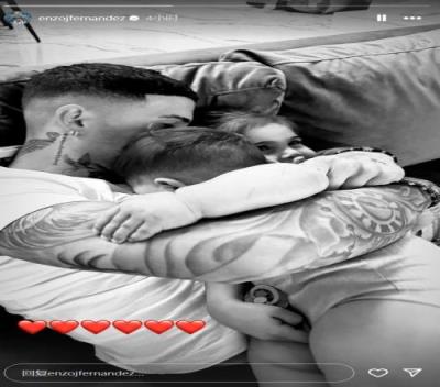 体育资讯11月13日报道宣称 切尔西中场恩佐更新社媒,晒出自己怀抱儿女的照片,并配文:❤️❤️❤️❤️❤️❤️