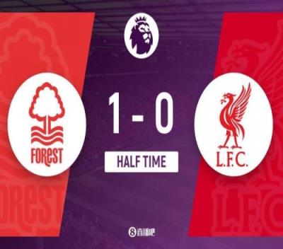 半场利物浦01落后森林红军开场8分钟丢球+9射门0射正
