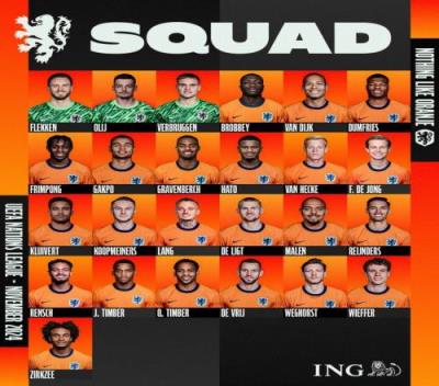 荷兰队11月欧国联名单:德容回归,范迪克、德里赫特、加克波在列