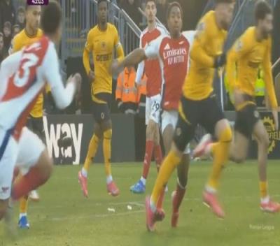 体育资讯01月25日报道宣称 英超第23轮,狼队vs阿森纳,比赛第43分钟,阿森纳球员斯凯利前场踢倒对手,主裁奥利弗直接出示红牌。