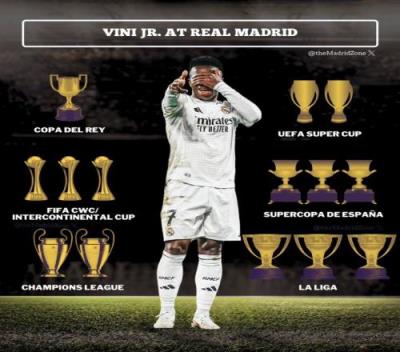 才24维尼修斯6年半皇马生涯已夺14冠,能否破魔笛28冠纪录