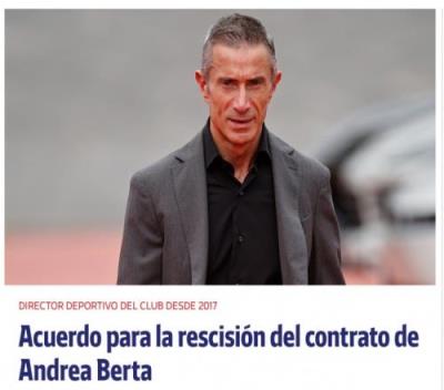 体育资讯1月6日报道宣称 马竞官方宣布,俱乐部和体育总监贝尔塔就终止合同达成协议,贝尔塔将结束自己在马竞十多年的杰出工作。