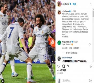 C罗祝福马塞洛:我们不仅仅是队友,也是一生相伴的伙伴