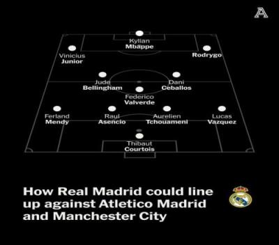前锋:维尼修斯、姆巴佩、罗德里戈