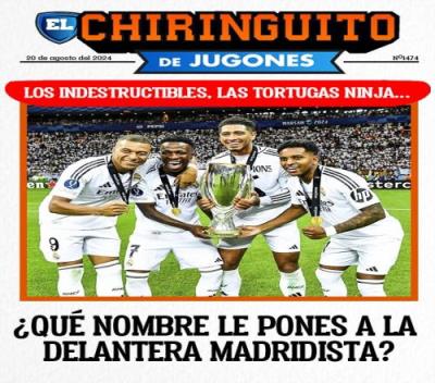 西班牙六台晒出姆巴佩、贝林厄姆、维尼修斯、罗德里戈捧欧超杯合影的图,并发问:“你会给皇马四人组起个什么名?”