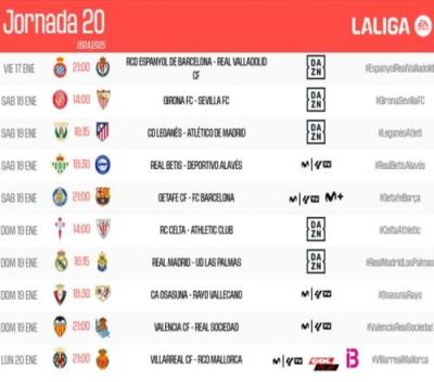 体育资讯1月9日报道宣称 西甲官方更新社媒动态,宣布第20轮5场比赛开球时间变更,包括赫罗纳vs塞维利亚、贝蒂斯vs阿拉维斯、塞尔塔vs毕尔巴鄂、奥萨苏纳vs巴列卡诺、瓦伦西亚vs皇家社会。