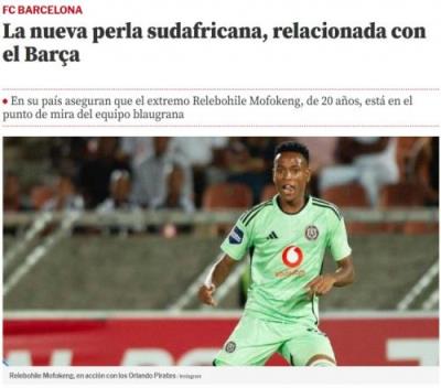 体育资讯12月3日报道宣称 《世界体育报》援引南非媒体Soccerladuma报道,巴萨在关注南非20岁小将雷莱博希尔-莫福肯。