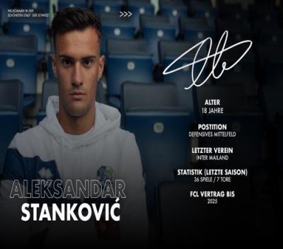 体育资讯12月4日报道宣称 19岁的小斯坦科维奇在接受采访时谈到了被租借到瑞士卢塞恩的生活,与父亲(国米名宿德扬-斯坦科维奇)和兄弟的故事,以及对于国际米兰憧憬。
