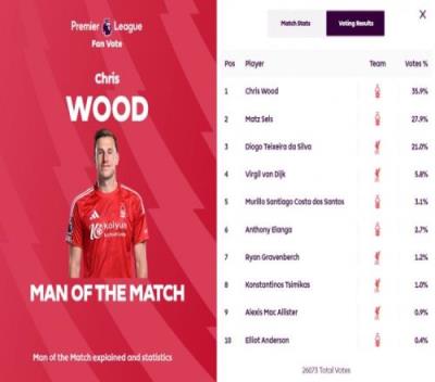 此役伍德为森林先拔头筹,他以35.9%的得票率当选全场最佳,利物浦方面得票率最高的则是若塔的21.0%。