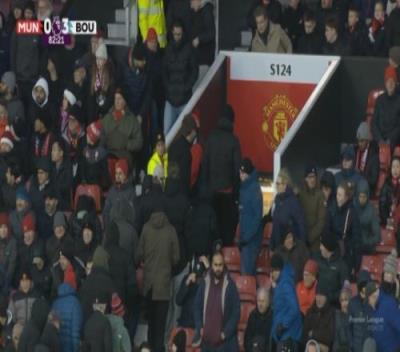 3球落后曼联球迷提前开始离场,伯恩茅斯球迷高唱庆祝又30了
