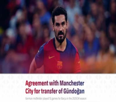 巴塞罗那与曼城就一线队球员京多安的转会达成协议,俱乐部对京多安的付出与奉献表示感谢,并祝愿他在未来的个人和职业生涯中一切顺利。