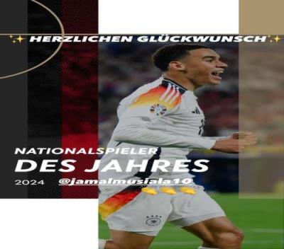 体育资讯12月12日报道宣称 德国足协官方消息,穆西亚拉当选2024年德国国家队年度最佳球员。