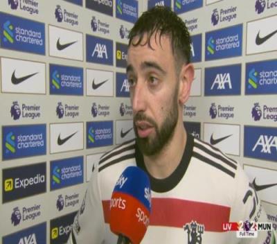 体育资讯1月6日报道宣称 双红会曼联客场2-2战平利物浦,赛后,曼联队长布鲁诺-费尔南德斯接受天空体育采访。