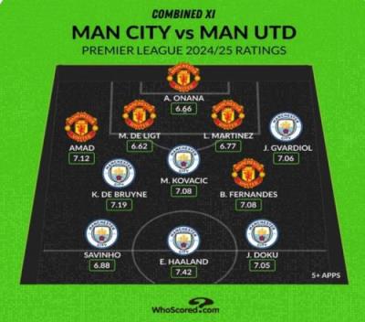 体育资讯12月15日报道宣称 本轮英超焦点战曼市德比即将打响,数据网站Whoscored也列出曼市双雄球员在本赛季英超场均评分最高阵容,其中哈兰德领衔曼城6人在列,以下为具体阵容(至少5次出场):