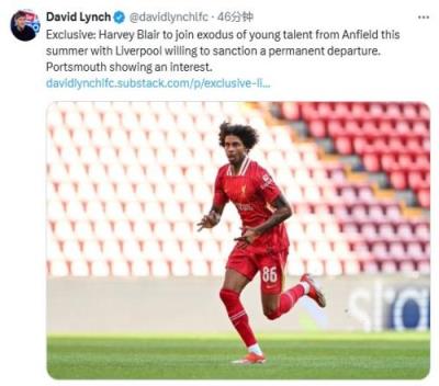 体育资讯8月18日报道宣 记者David Lynch报道,利物浦愿意出售小将哈维-布莱尔。