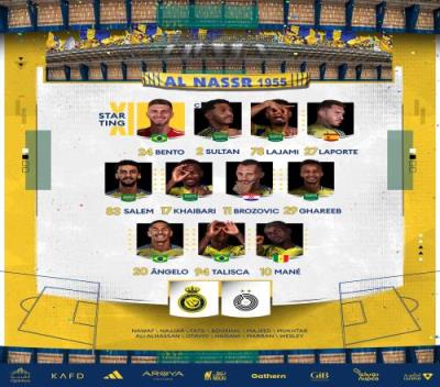 附利雅得胜利首发:24-本托、2-苏丹-哈纳姆、78-拉贾米、27-拉波尔特、83-萨勒姆-纳吉迪、17-哈巴利、11-布罗佐维奇、29-加里卜、20-安吉洛、94-塔利斯卡、10-马内