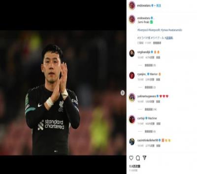 远藤航也在赛后通过社媒晒出自己的比赛照,并配文:“晋级半决赛 ✅”。