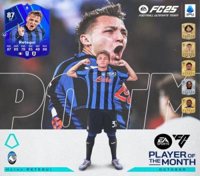 体育资讯11月14日报道宣称 官方消息,亚特兰大前锋雷特吉当选意甲联赛10月最佳球员。