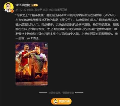 体育资讯12月22日报道宣称 本轮英超,阿森纳5-1战胜水晶宫,赛后,评述员詹俊对比赛做出点评。