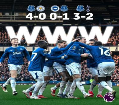 体育资讯02月02日报道宣称 英超第24轮,埃弗顿4-0大胜莱斯特城,本场比赛是莫耶斯上任后执教埃弗顿的第4场比赛,4场比赛3胜1负。