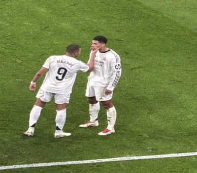 体育资讯12月3日报道宣称 本赛季西甲第15轮,皇马主场2-0击败赫塔费。赛中的一幕在网络上传播,当时姆巴佩捏着贝林厄姆的脸颊,查看他的鼻子。