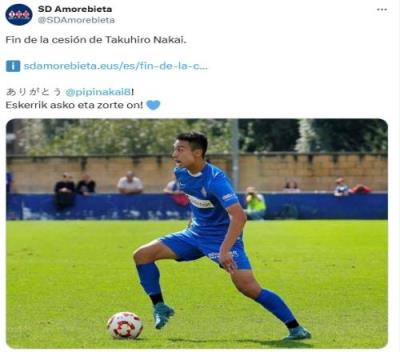 体育资讯2月2日报道宣称 西协甲球队亚摩勒比塔官方宣布,中井卓大提前结束租借,回归皇马。