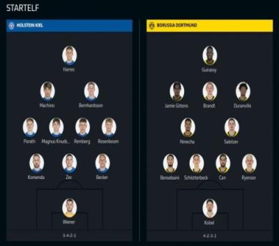 体育资讯1月15日报道宣称 北京时间今日1:30,德甲第17轮,荷尔斯泰因基尔主场对阵多特蒙德,此役双方首发已经公布。