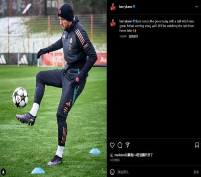 凯恩晒出自己恢复训练的照片,并写道:“很开心今天回到草地上进行了有球训练,康复进展很顺利!待会儿我会在家里观看小伙子们的比赛