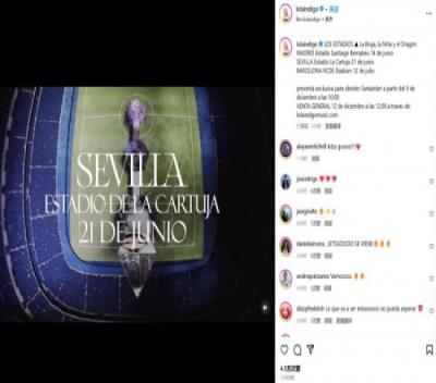 体育资讯12月3日报道宣称 西班牙人气歌手Lola Indigo在今日宣布明夏西班牙演唱会日程,其中伯纳乌球场将在6月14日承办马德里的演唱会。皇马官方对此发布了声明: