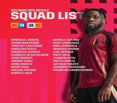 比利时名单:卢卡库、拉维亚、特罗萨德、多库在列