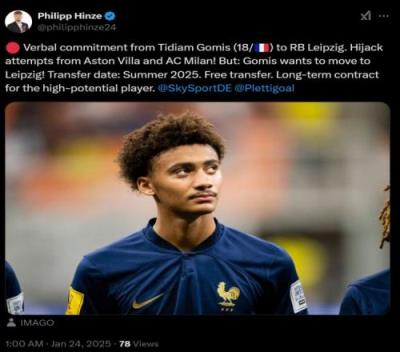 德天空:莱比锡免签戈米斯达成口头协议,米兰和维拉曾尝试截胡