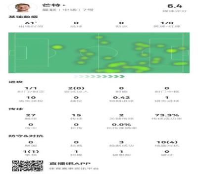 芒特本场数据:2关键传球+1错失重大机会11对抗5成功获评6.4分
