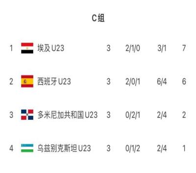 体育资讯7月30日报道宣称 奥运男足小组赛C组第3轮战罢,最终小组积分榜排名确定。