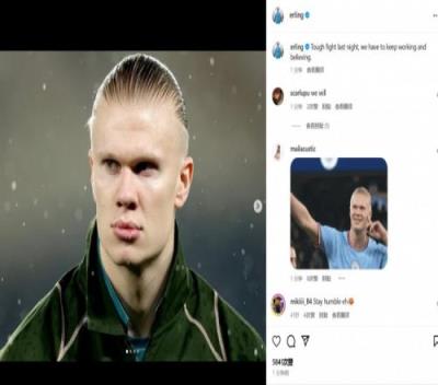 目前,哈兰德更新了社媒:“昨晚的战斗很艰苦,我们必须继续努力并保持信心”。