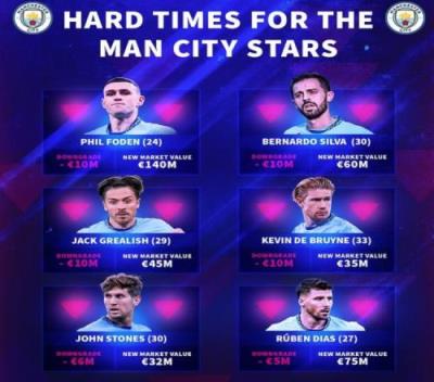 危机的具象化!本期德转身价更新,曼城6位大将共下降5100万欧