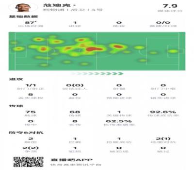 全面!范迪克本场数据:1进球1关键传球2解围1拦截,评分7.9