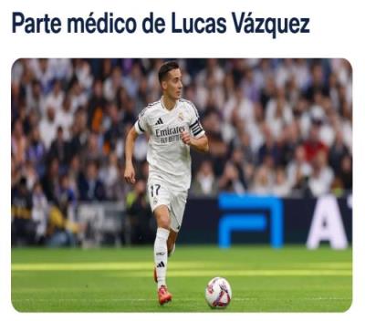 今天,皇马医疗服务中心对我们的球员卢卡斯-巴斯克斯进行了检查,结果诊断他左腿长收肌受伤,伤情进展有待进一步观察。
