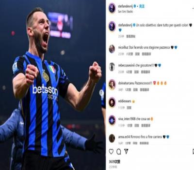 德弗里社媒晒怒吼照庆祝绝平:唯一的目标就是为国米竭尽全力