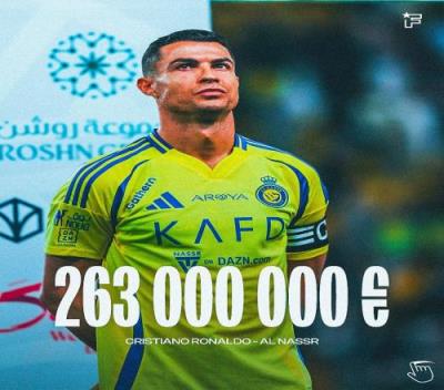 1、C罗,2.63亿欧
