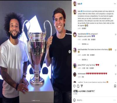 卡卡社媒晒出与马塞洛的合照,并写道:“马塞洛,你在球场上的旅程多么美好!除了许多冠军,你还赢得了球迷和队友的心。”