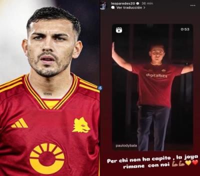 虽然有许多媒体都表示迪巴拉已经决定要留在罗马效力,但并不是所有的球迷都能够很好地理解迪巴拉这篇帖子想要表达的含义,于是他的队友帕雷德斯充当了好心人,他在社交媒体上写道:“跟那些没懂的人解释一下。迪巴拉会继续跟我们在一起。”