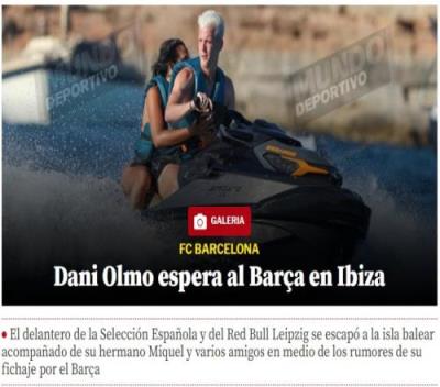体育资讯7月26日报道宣称 《世界体育报》报道,巴萨转会目标奥尔莫正在伊维萨岛度假。