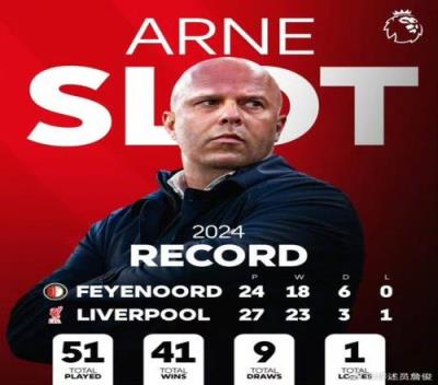 詹俊写道:2025年的第一天和网友们说一声: 早上好!虽然2024年他只拿到一个荷兰足协杯的冠军,但斯洛特全年执教两队各项赛事相加一共只输了一场,胜率高达80%。希望今年利物浦队戒骄戒躁脚踏实地,能够在他的率领下拿到英超冠军!