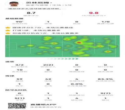 体育资讯1月10日报道宣称 西超杯半决赛,皇马3-0马洛卡晋级决赛将战巴萨。此役贝林厄姆首发打满全场发挥出色,球员重点数据如下↓