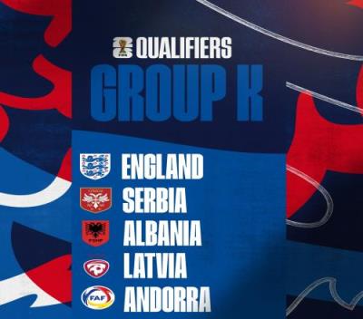 K组:英格兰、塞尔维亚、阿尔巴尼亚、拉脱维亚、安道尔