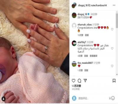 体育资讯12月4日报道宣称 利物浦前锋若塔与妻子鲁特-卡多索更新社媒动态,宣布第三个孩子出生。